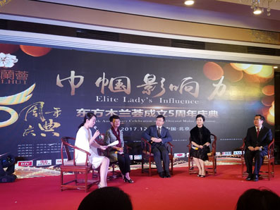 在慶典和頒獎晚會現(xiàn)場,“東方木蘭薈”還聯(lián)合亞洲經(jīng)濟發(fā)展協(xié)會,舉辦了第一屆“巾幗影響力”女性對話。來自中國技術經(jīng)濟研究中心、四川甲鼎投資公司、北京市家庭建設促進會和東方木蘭薈內(nèi)蒙、四川、唐山、貴州分會的女性精英代表各抒己見,就“社群經(jīng)濟時代的女性力量”以及“女性在家庭社會及國際事務中影響力”兩個主題共同探討女性在家庭、藝術、教育等領域所能發(fā)揮的優(yōu)勢。