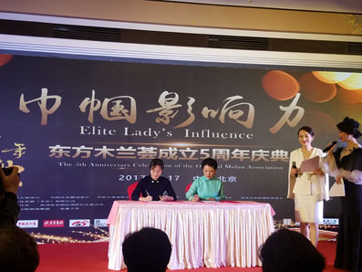 國內(nèi)最有影響力的女性團體之一-----東方木蘭薈在北京隆重舉行了東方木蘭薈成立五周年慶典暨東方木蘭薈頒獎晚會。中國亞洲經(jīng)濟發(fā)展協(xié)會會長陳軍、東方木蘭薈榮譽會長李元華、東方木蘭薈會長譚希松、東方木蘭薈秘書長姚遠和來自中國婦聯(lián)、民政部門、慈善協(xié)會、以及四川、貴州、內(nèi)蒙古、唐山、上海、和廣州的東方木蘭薈分會的近200名嘉賓共同出席了慶典晚宴,同賀東方木蘭薈成立五周年!