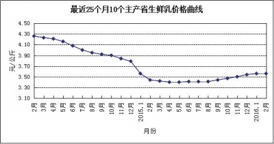 從價格變化趨勢看,生鮮乳價格連續(xù)6個月小幅上漲后,本月價格與上月持平。