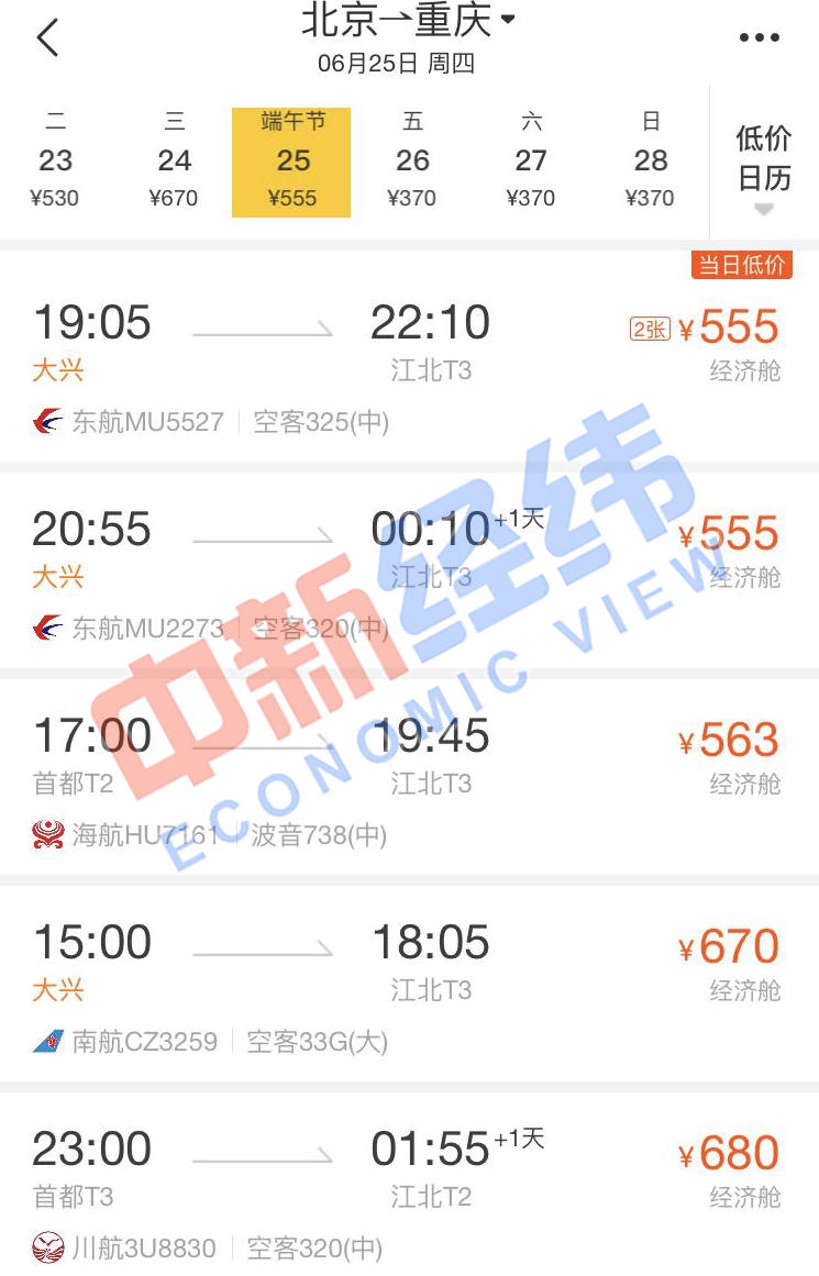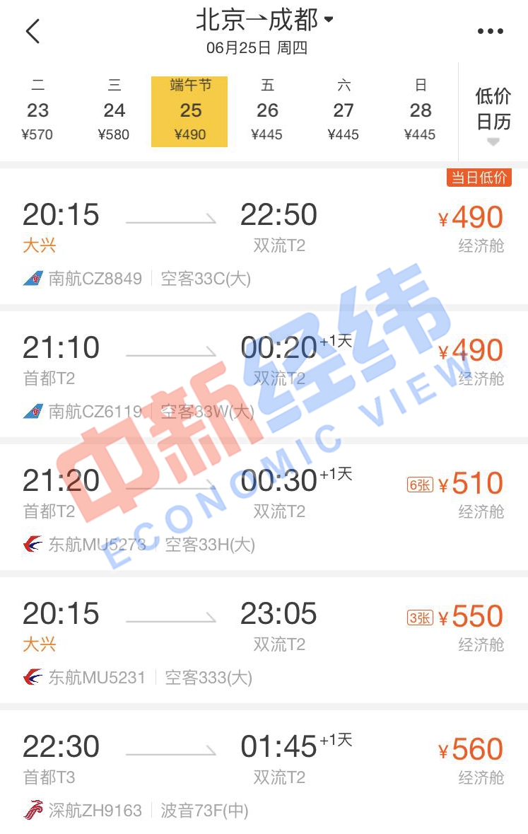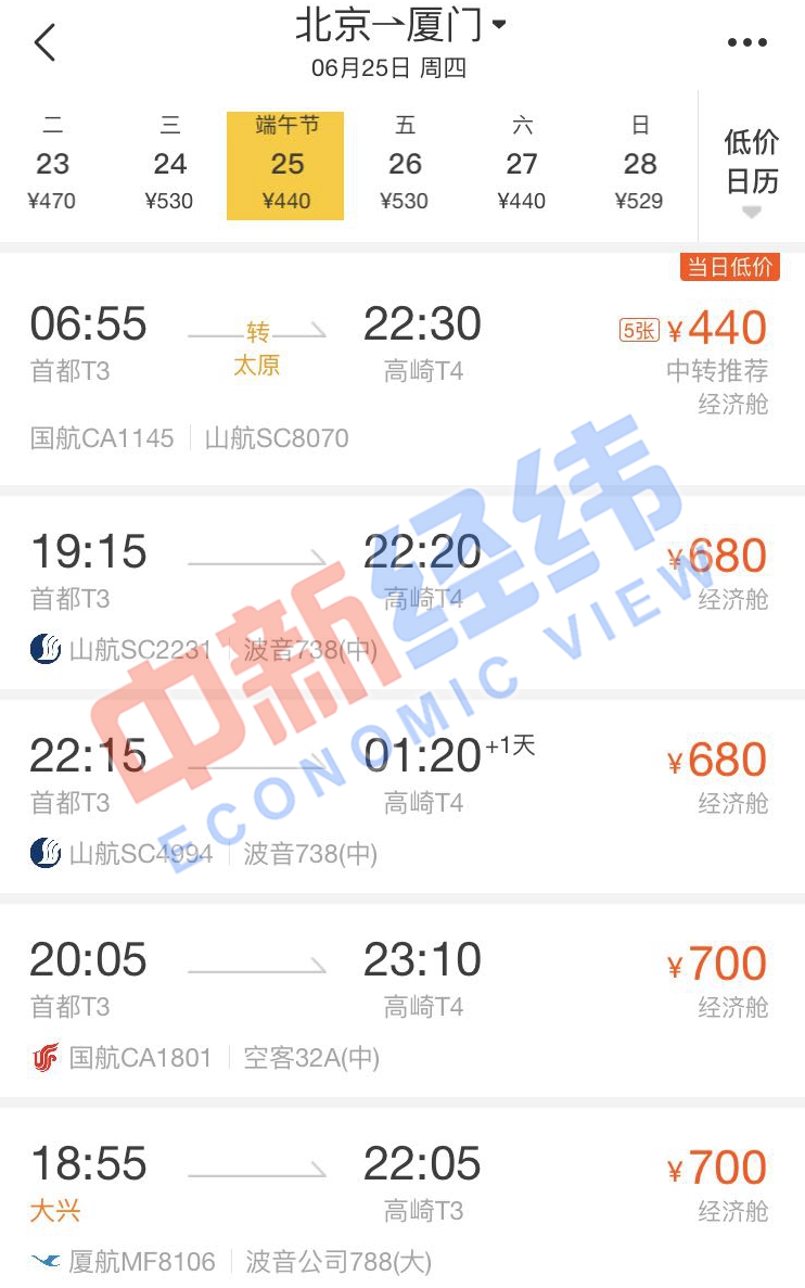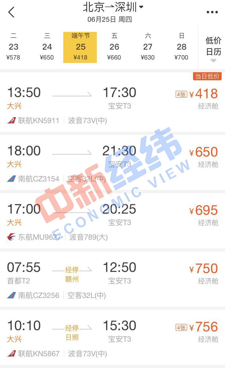 面對(duì)即將到來(lái)的端午節(jié)假期,即使沒(méi)有買到高鐵票也沒(méi)關(guān)系。通過(guò)第三方售票平臺(tái)發(fā)現(xiàn),端午節(jié)當(dāng)天,北京到多個(gè)城市的機(jī)票價(jià)格比高鐵還實(shí)惠,個(gè)別航班甚至便宜超一半。