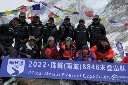 5月10日,他和團(tuán)隊(duì)開(kāi)始從尼泊爾一側(cè)向珠峰南坡發(fā)起沖擊。5月15日5:55分,成功登頂?shù)年悤运嚱K于站上了8848.86米的高度。