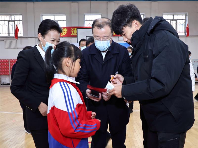 中經(jīng)聯(lián)播訊(朱淑英)在中國冰壺聯(lián)賽伊春站比賽即將開幕之際,12日下午,國家體育總局副局長李穎川,冬季運(yùn)動(dòng)管理中心主任倪會(huì)忠,省政府副秘書長馬里,省體育局局長錢福永、副局長莊士超一行人等來到冬奧冠軍高亭宇的母?!链菏心喜砜h東方紅學(xué)校,為那里的學(xué)生捐贈(zèng)了50雙冰刀。冬奧冠軍高亭宇出席活動(dòng)并觀看了學(xué)生運(yùn)動(dòng)員的訓(xùn)練,還與滑冰小將們親切互動(dòng),為他們簽名留念。