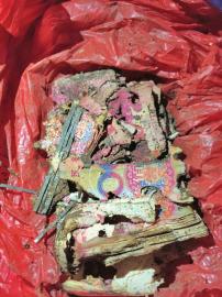 這兩包錢渣渣,共計(jì)兩萬(wàn)元整,之前都埋于地下。直到三天前,他突然記起,挖出它們時(shí),發(fā)現(xiàn)兩萬(wàn)現(xiàn)金已被白蟻啃成碎片。